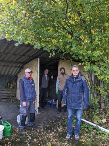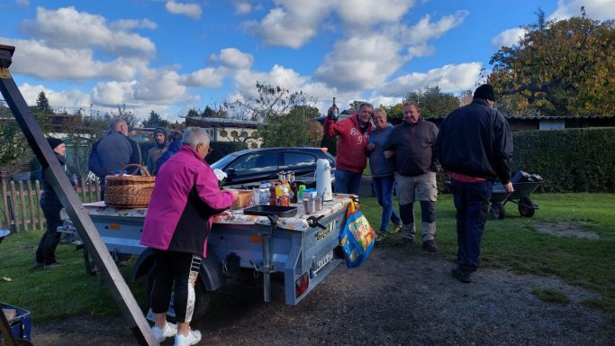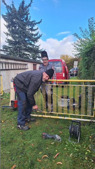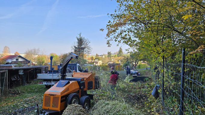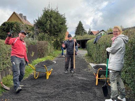 Im Oktober 2025 wurde zum letzten Arbeitseinsatz aufgerufen. Die anwesenden Gartenfreunde waren so zahlreich vertreten das man glauben könnte es gäbe nicht genug Arbeit. Doch dem war nicht so. Es wurde dieses mal das Hauptaugenmerk auf die Ausbesserung der Wege gelegt. Aber wir haben auch eine Parzelle von wildem Bewuchs befreit weil sich der Pächter aus gesundheiltlichen Gründen nicht mehr um seinen Garten kümmern konnte. Dies bewies einmal mehr den Zusammenhalt unserer Vereinsmitglieder. Es wurden auch Hecken und Sträucher an der Abgrenzung zum Wald verschnitten und ein Lager für Baustoffe wurde eingerichtet. Zwei Schaukästen wurden neu installiert und die Tore an den Zufahrten ausgebessert. Auch die Stromzahlerkästen wurden überprüft und repariert. In allem war es ein erfolgreicher Tag der wieder an unserer Verpflegungsstation endete.