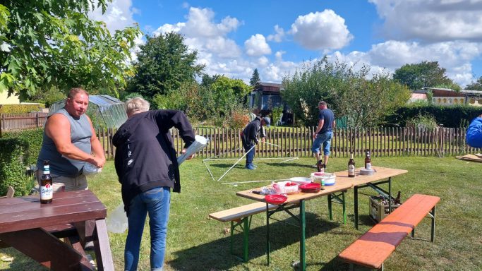Unser Sommerfest, am 25. August 2025, währe fast in´s Wasser gefallen. Die Vorbereitungen waren abgeschlossen. Es wurde ein Festzelt organisiert und der große Grill wurde aufgestellt. Weiterhin wurde Holz für das abendliche Lagerfeuer, welches selbstverständlich auch angemeldet war, bereitgestellt.