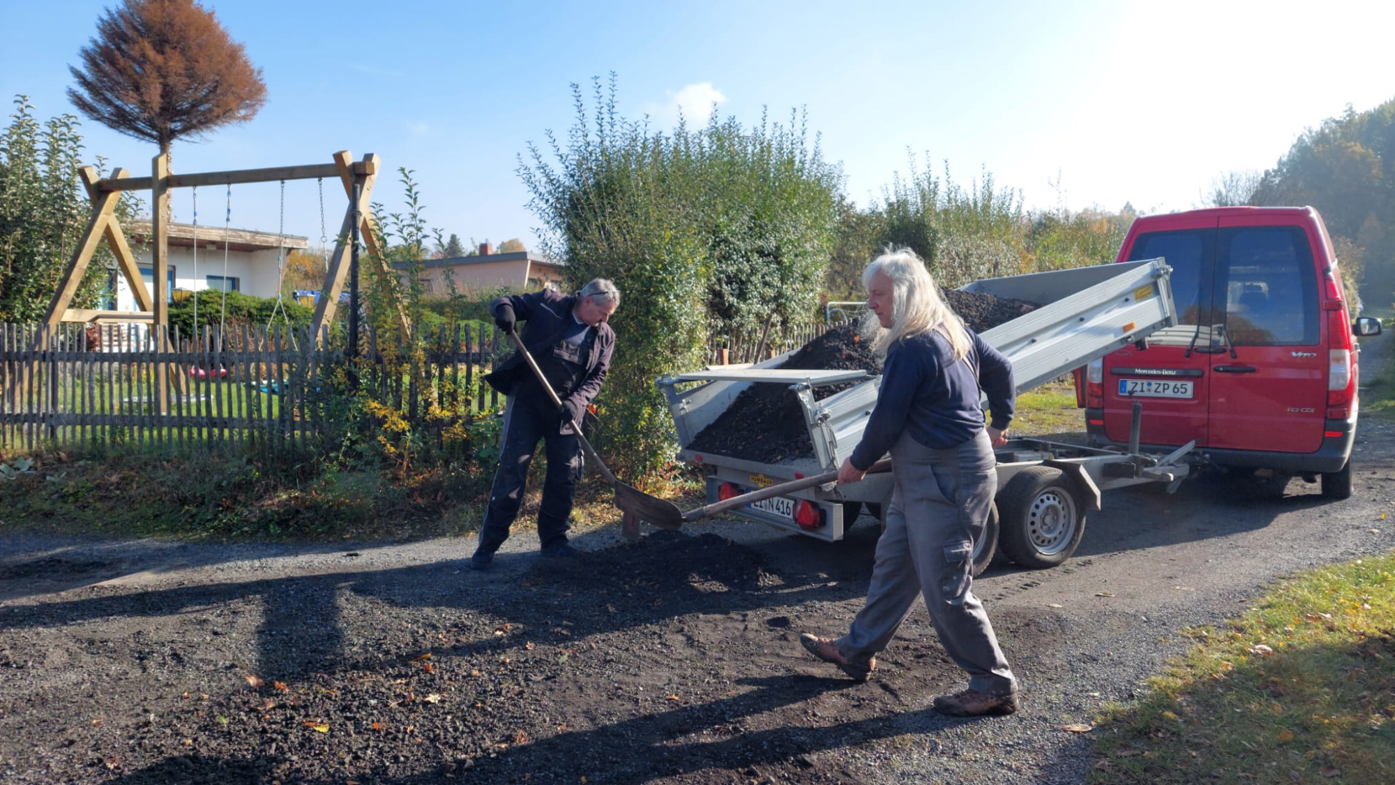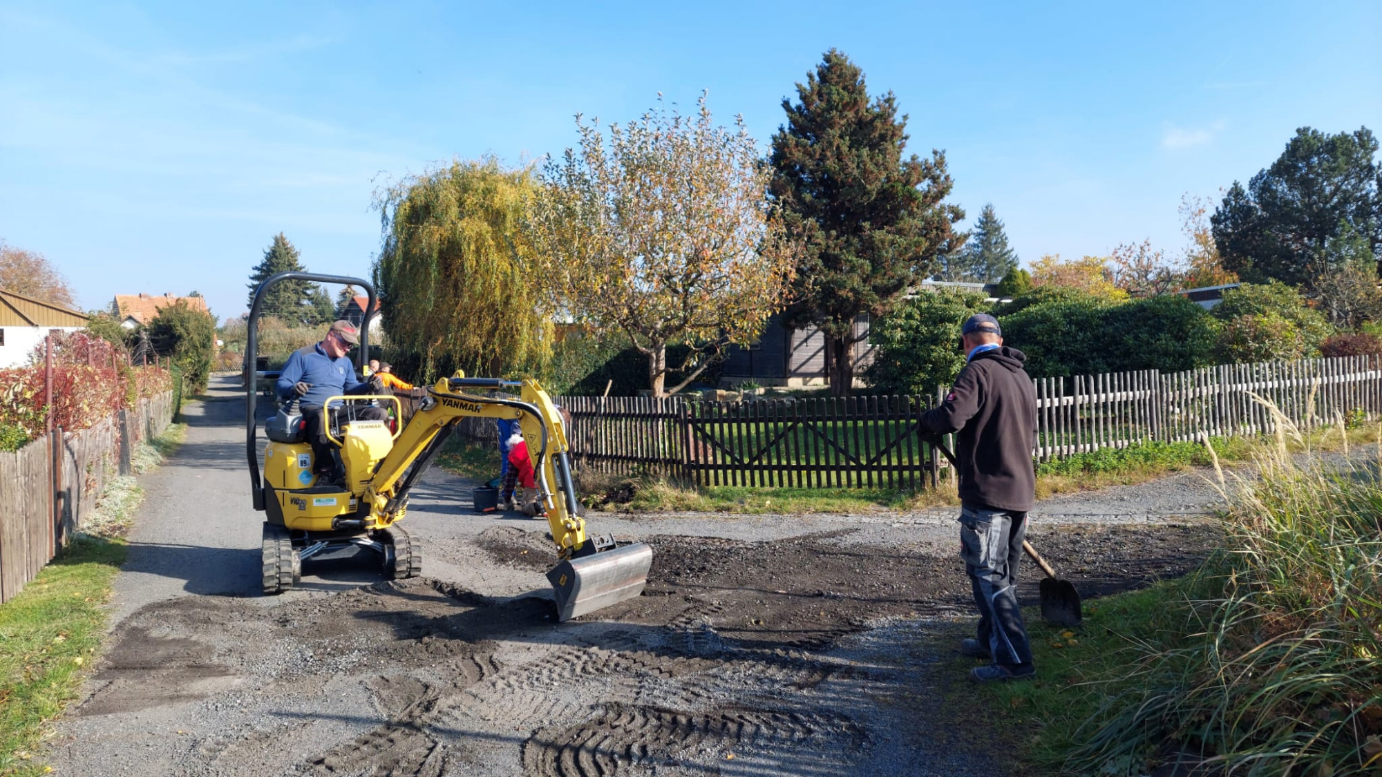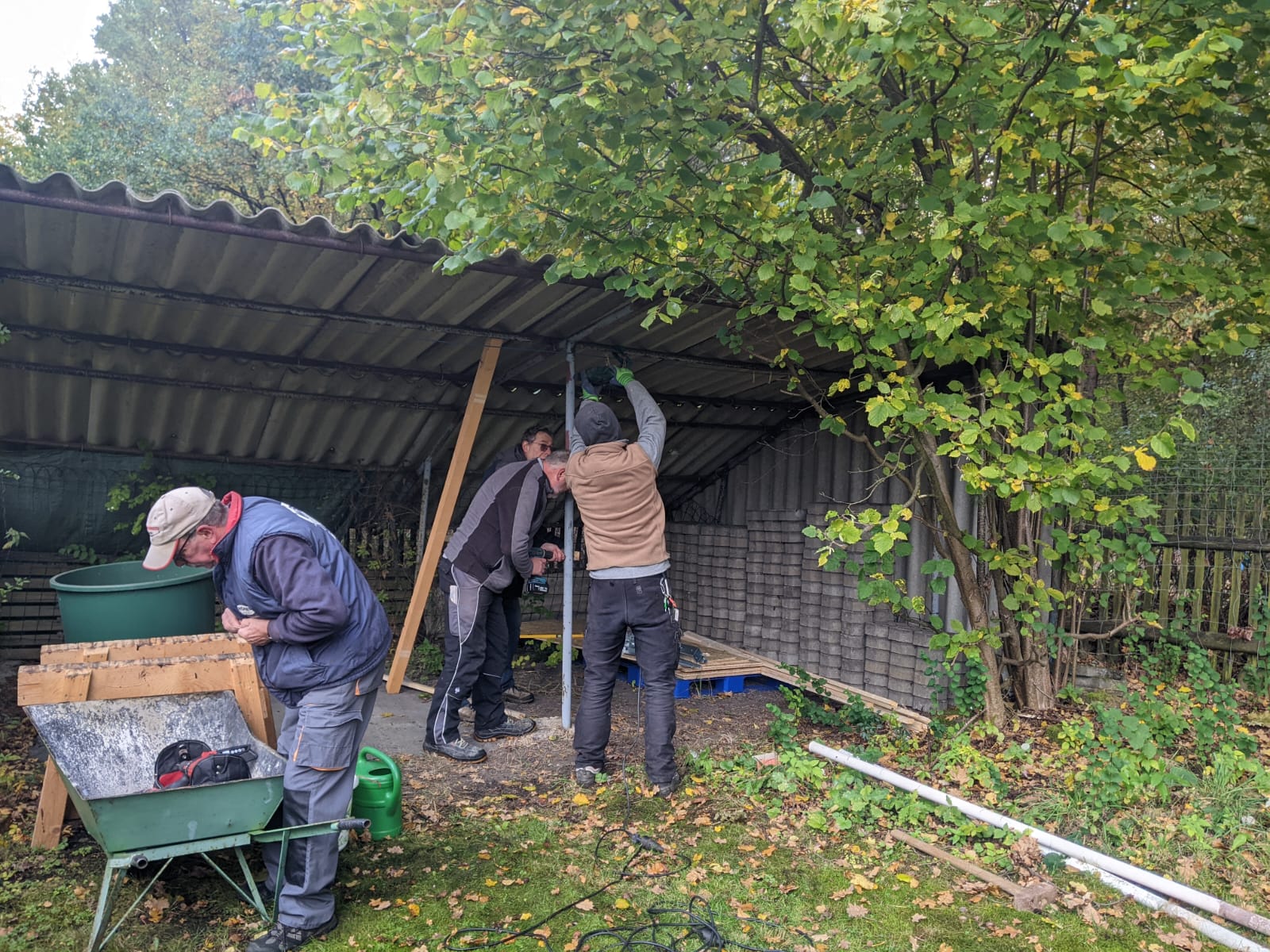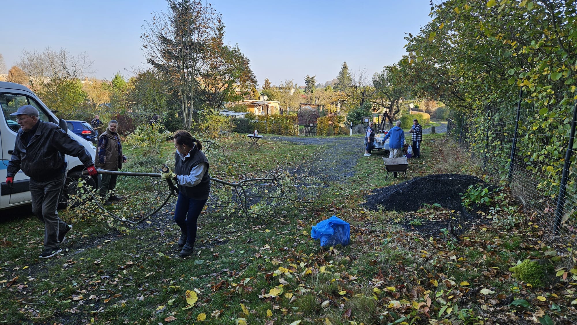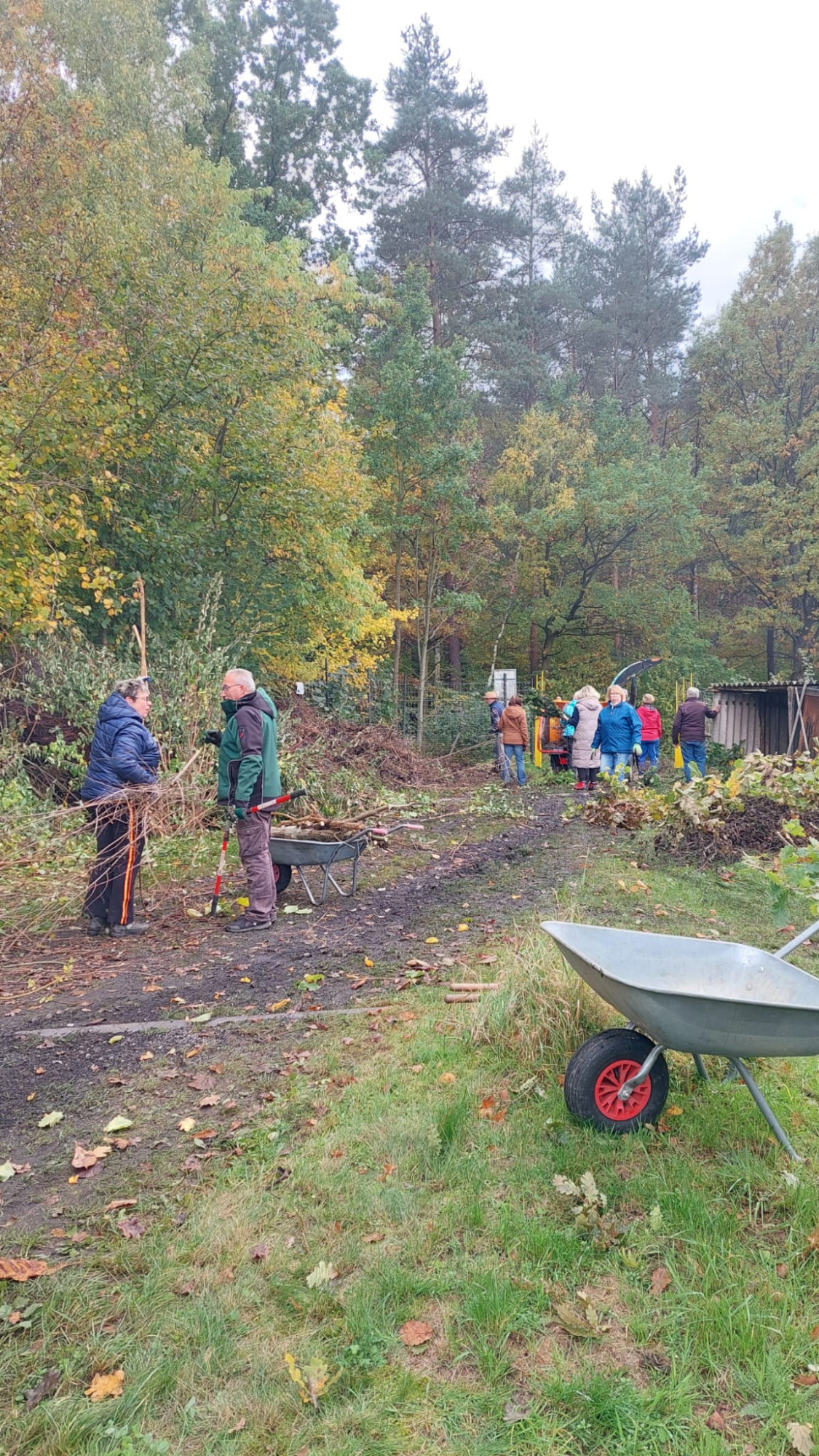 Im Oktober 2025 wurde zum letzten Arbeitseinsatz aufgerufen. Die anwesenden Gartenfreunde waren so zahlreich vertreten das man glauben könnte es gäbe nicht genug Arbeit. Doch dem war nicht so. Es wurde dieses mal das Hauptaugenmerk auf die Ausbesserung der Wege gelegt. Aber wir haben auch eine Parzelle von wildem Bewuchs befreit weil sich der Pächter aus gesundheiltlichen Gründen nicht mehr um seinen Garten kümmern konnte. Dies bewies einmal mehr den Zusammenhalt unserer Vereinsmitglieder. Es wurden auch Hecken und Sträucher an der Abgrenzung zum Wald verschnitten und ein Lager für Baustoffe wurde eingerichtet. Zwei Schaukästen wurden neu installiert und die Tore an den Zufahrten ausgebessert. Auch die Stromzahlerkästen wurden überprüft und repariert. In allem war es ein erfolgreicher Tag der wieder an unserer Verpflegungsstation endete.