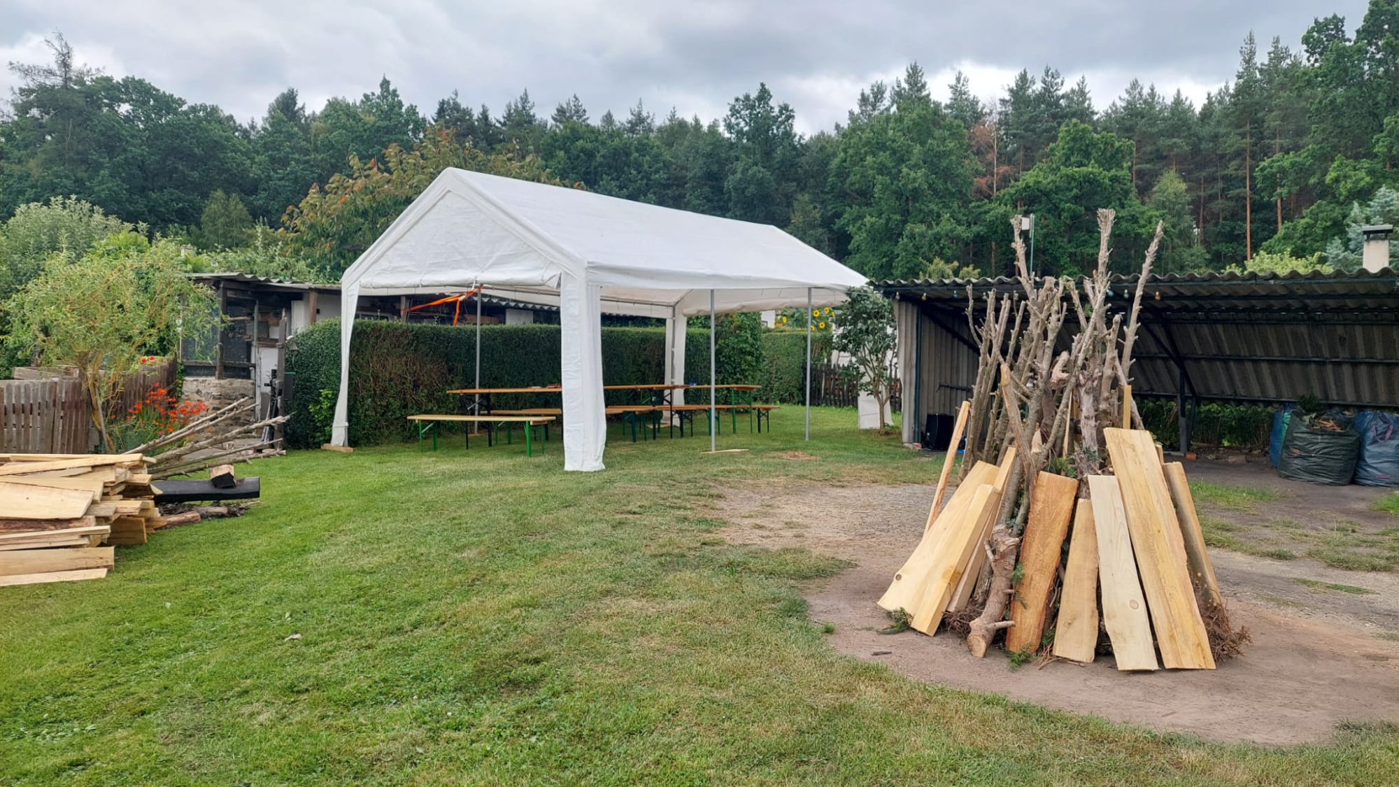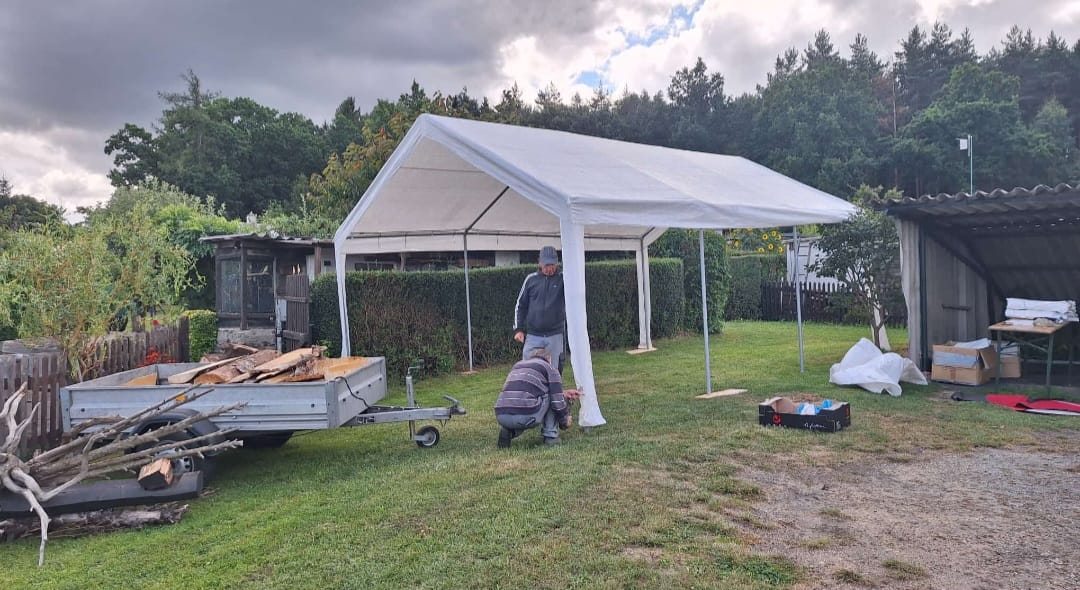 Unser Sommerfest, am 25. August 2025, währe fast in´s Wasser gefallen. Die Vorbereitungen waren abgeschlossen. Es wurde ein Festzelt organisiert und der große Grill wurde aufgestellt. Weiterhin wurde Holz für das abendliche Lagerfeuer, welches selbstverständlich auch angemeldet war, bereitgestellt.